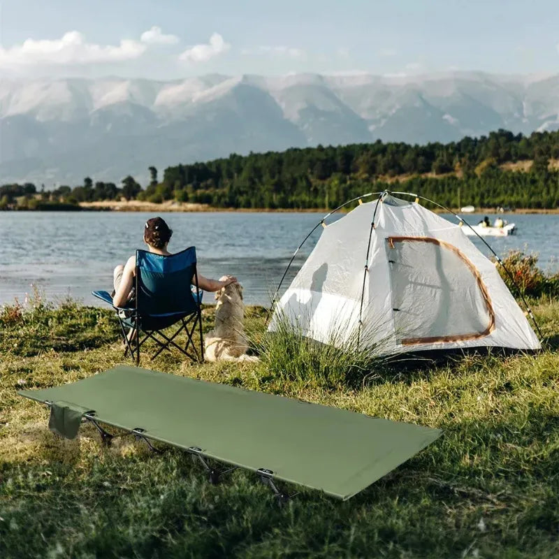 Vous en avez assez de dormir sur le sol dur lors de vos excursions? Avec notre lit de camping pliable, vous pouvez enfin profiter d'un sommeil réparateur même en pleine nature. Conçu pour être ultra-léger et compact, il est parfait pour le camping, la randonnée et les voyages. Sa capacité de charge élevée de 150 kg permet d'accueillir confortablement deux personnes.